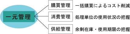 医薬品や診療材料、事務用品や日用品、滅菌物、リネン類など病院内で SPDの役割 医材の購買・消費・供給を一元管理 |