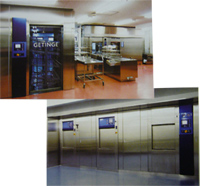 | “理想的なスリーゾーン“※ に仕切られた当センターは、感染管理の教育を受けた職員により院外滅菌業務を請け負っています。殆どの装置は、GETINGE社を始め厳しい欧州規格をクリアした最新鋭の機器で、「医療現場における滅菌保証のガイドライン」に対応すべく”トータルドキュメンテーションシステム”を導入しています。 ※中央材料室を、洗浄前の汚染エリアと洗浄・消毒後の組立エリアと既滅菌のクリーンエリアの3ゾーンに区切る考え方です。従来の滅菌前後の2ゾーンの考え方と比較し、感染者に踏み込んだ理想的な形となります。 |